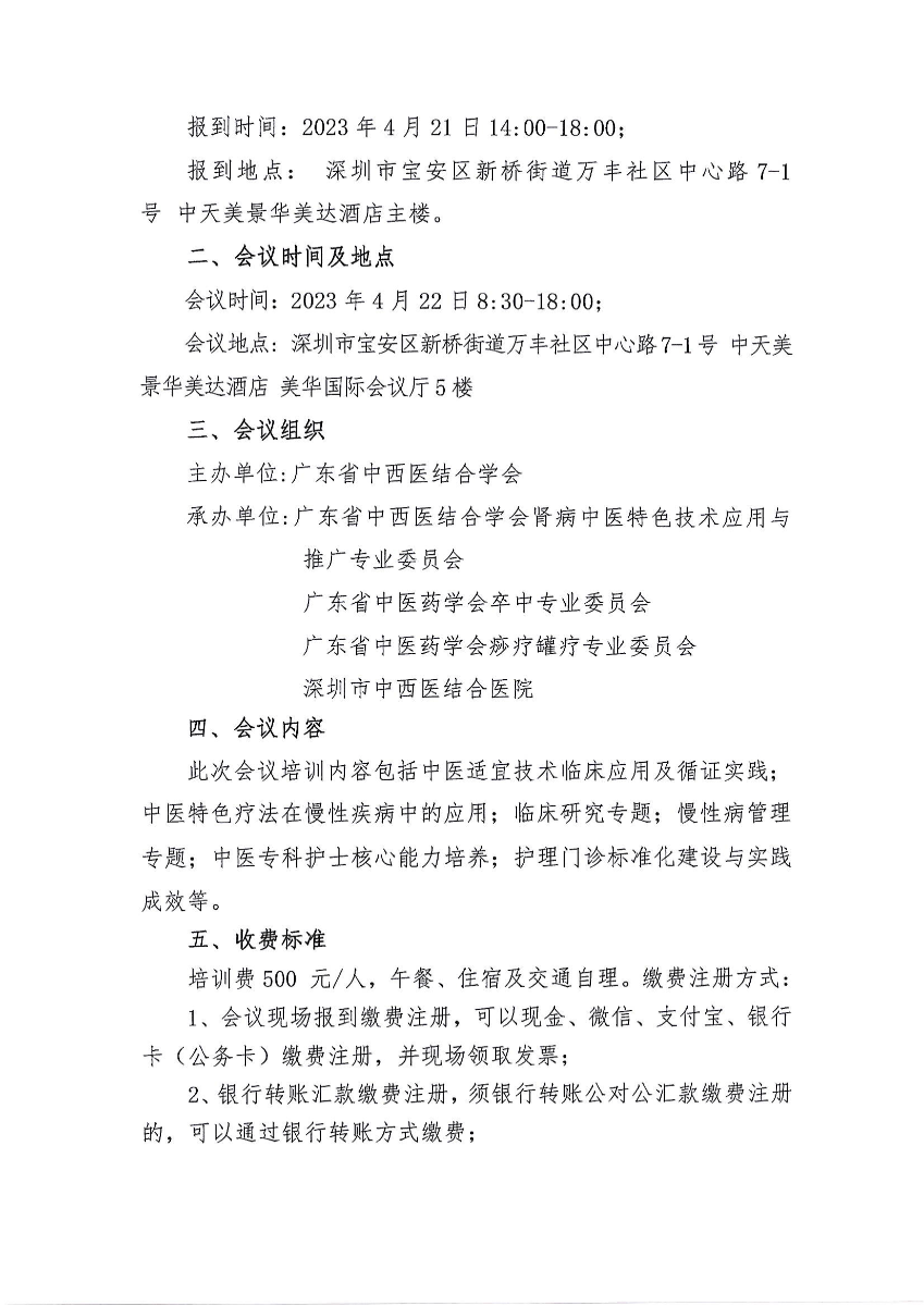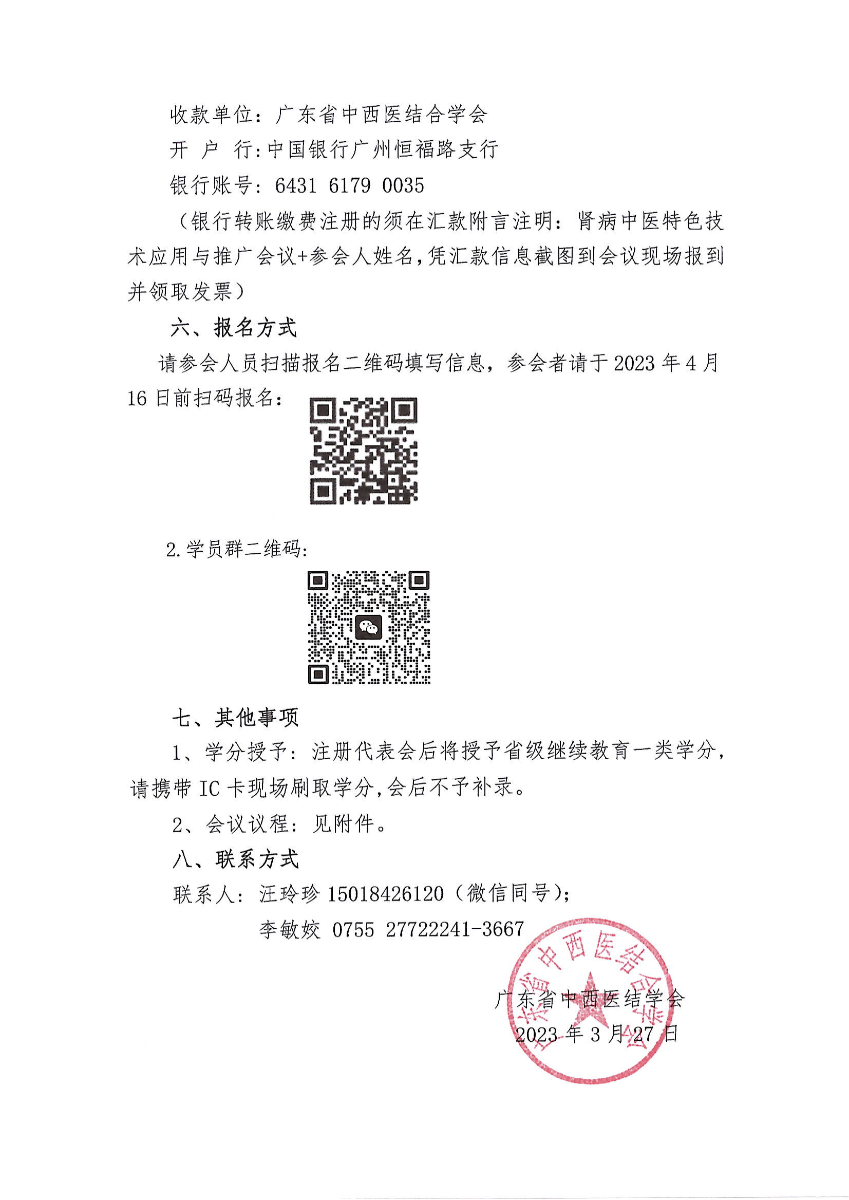 2023年广东省中西医结合学会肾病中医特色技术应用与推广专业委员会学术年会 暨中医特色技术应用与推广培训班 会议通知(第二轮)