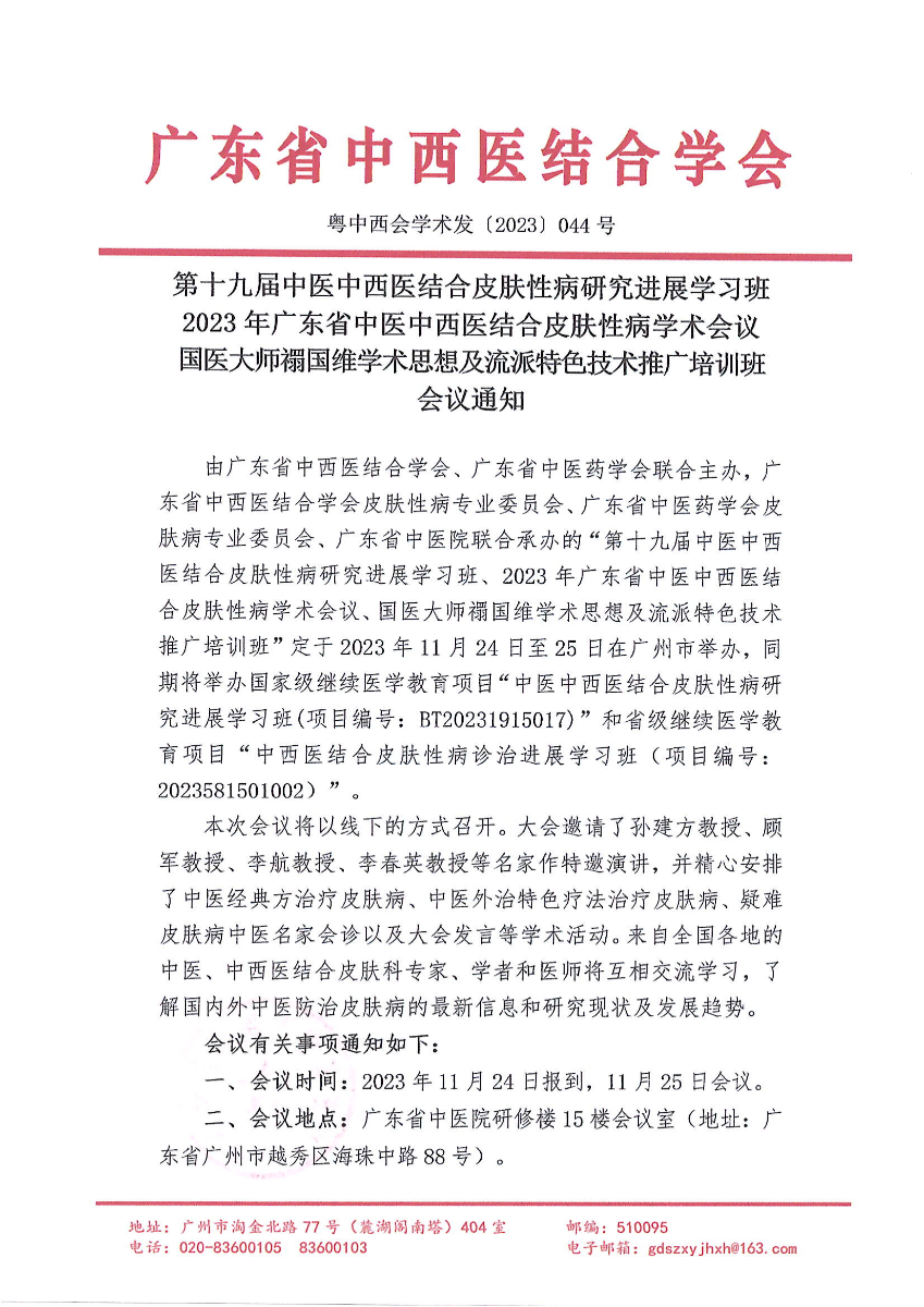第十九届中医中西医结合皮肤性病研究进展学习班 2023年广东省中医中西医结合皮肤性病学术会议 国医大师禤国维学术思想及流派特色技术推广培训班